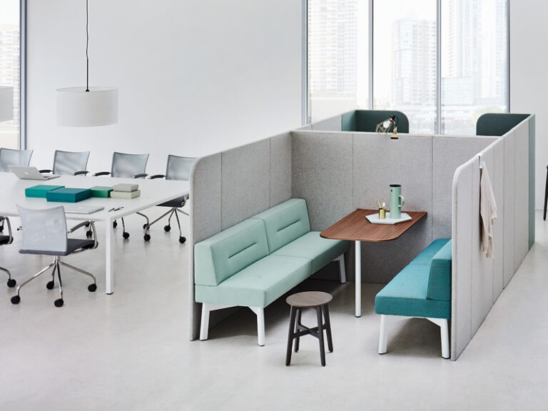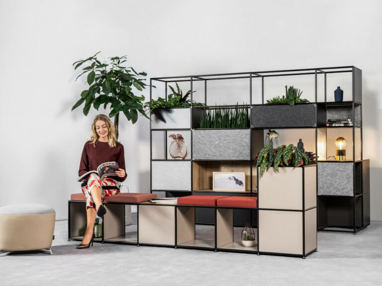 Eine umfassende Unterteilung und Zonierung der Räume kann mit Systemen erfolgen, die als flexibler Innenausbau mit zusätzlichem Nutzen wie Luftreinigung, integrierter Beleuchtung, Aufnahme von Pflanzelementen und auch technischen Komponenten eine maximale Wirkung, sozusagen als „Raum-im-Raum“, entfalten.